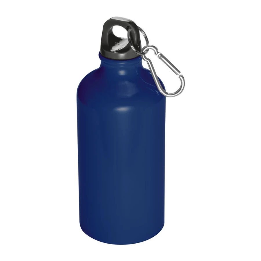 Egyrétegű, szivárgásmentes alumínium kulacs csavaros kupakkal és karabinerrel.