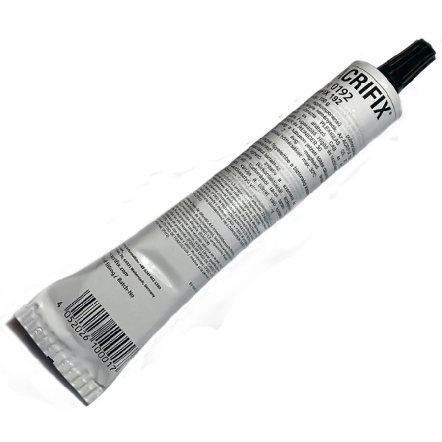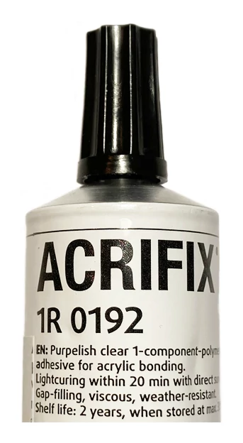 Az "Acrifix 1R 0192" fényre kötő, víztiszta enyhén lilás színű, egykomponensű polimeriációs ragasztó.