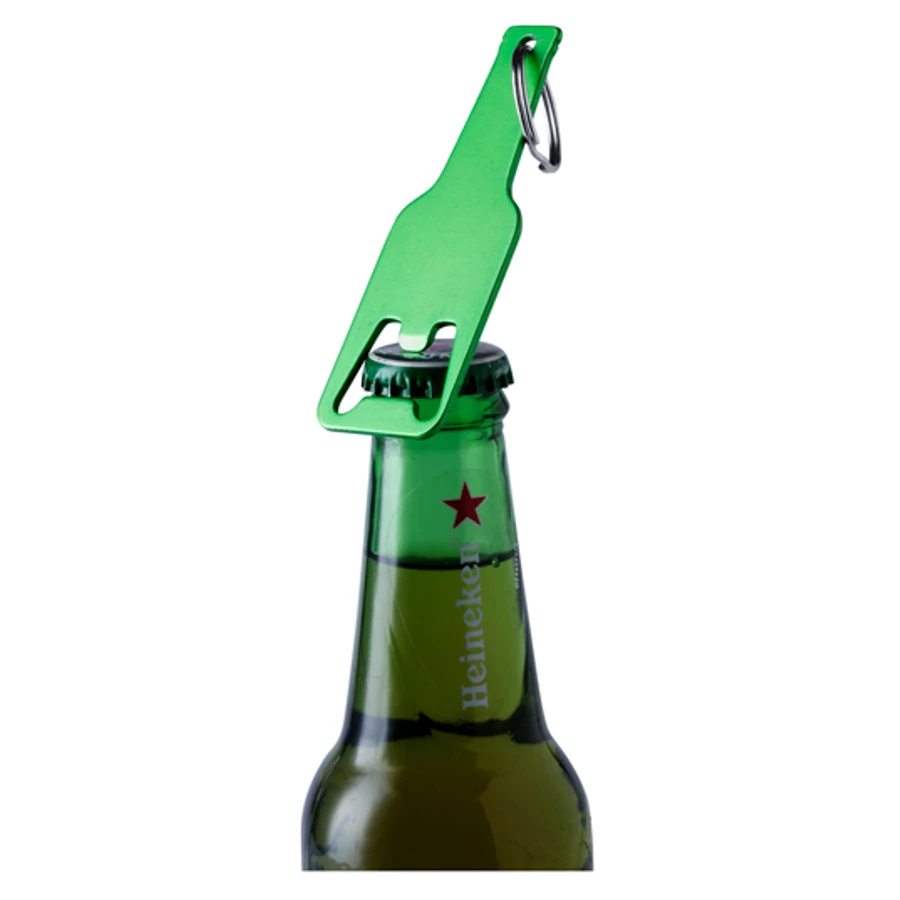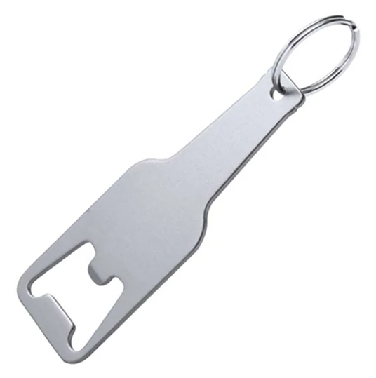 Alumínium, mind a két oldalán gravírozható üveg formájú kulcstartó.