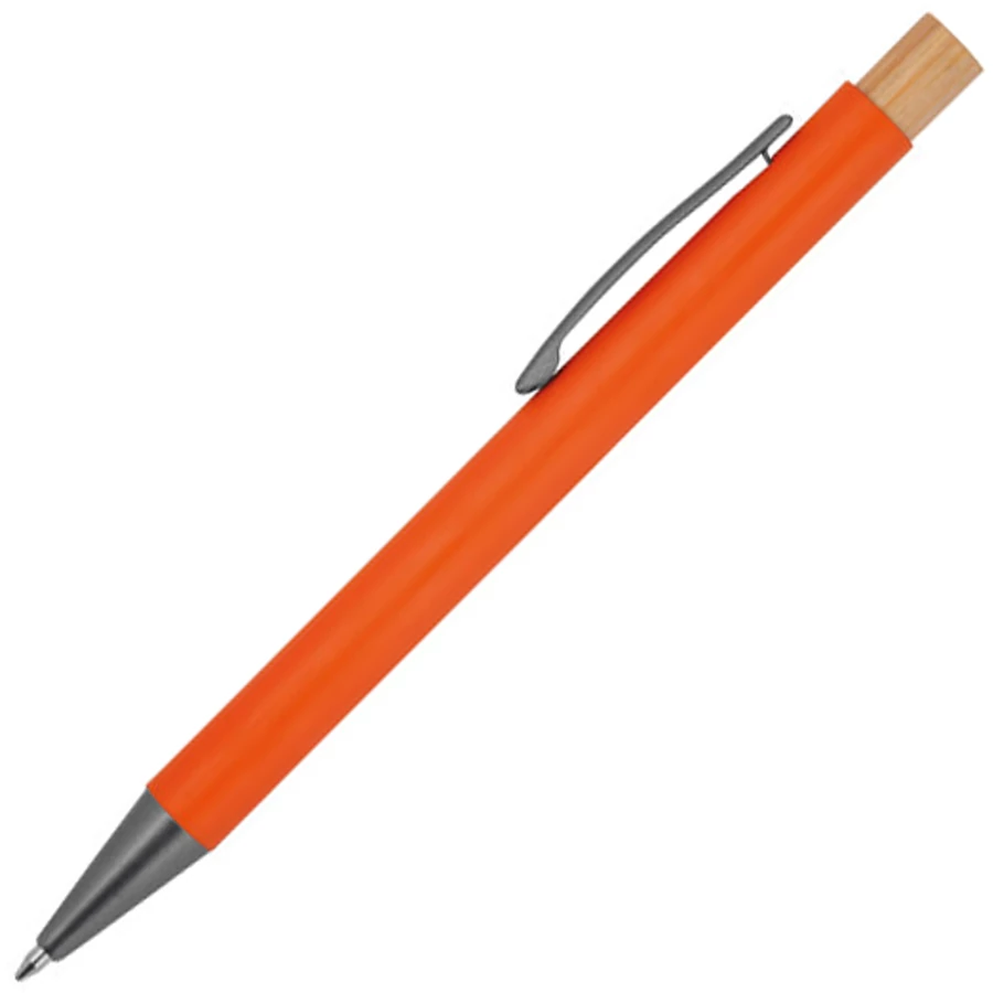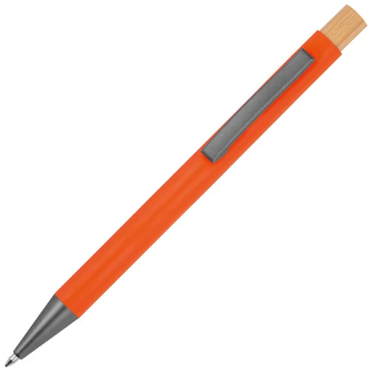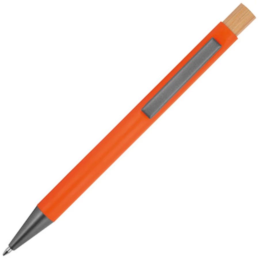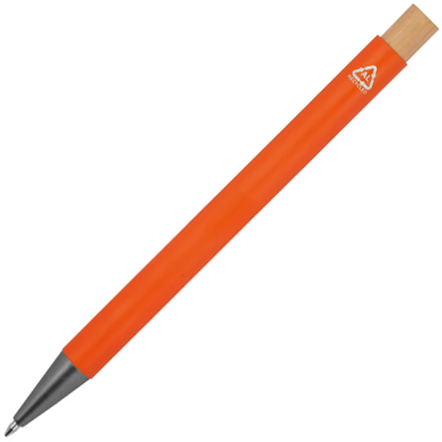 Újrahasznosított alumíniumból készült golyóstoll bambusz nyomógombbal.