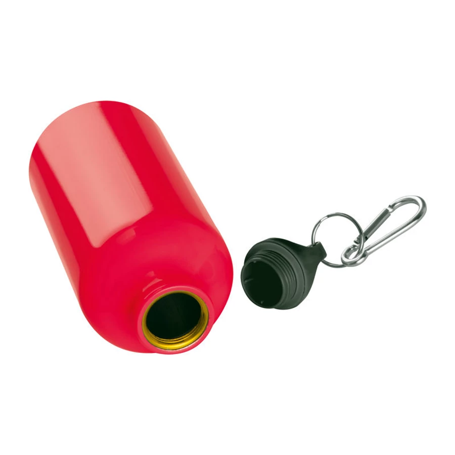 Egyrétegű, szivárgásmentes alumínium kulacs csavaros kupakkal és karabinerrel.