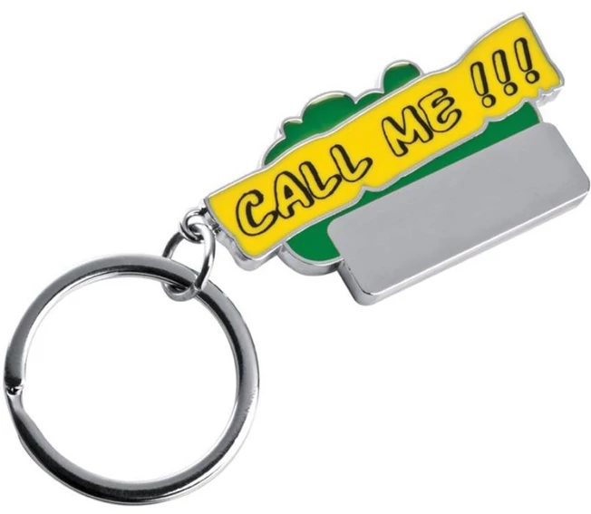 "Call Me" feliratos fém kulcstartó, színes festett és sima gravírozható felülettel.