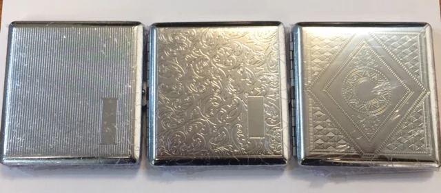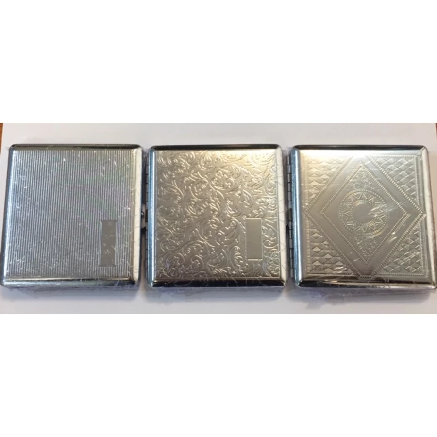 Fényes ezüstszínű tárca, 20 db cigaretta fér el benne.