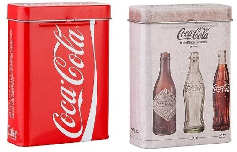 Fém cigarettatartó doboz Coca-Cola mintával.