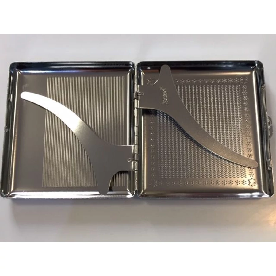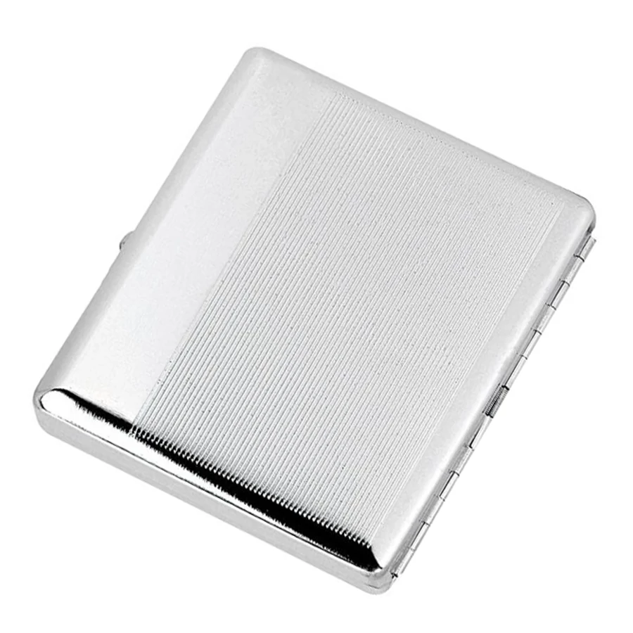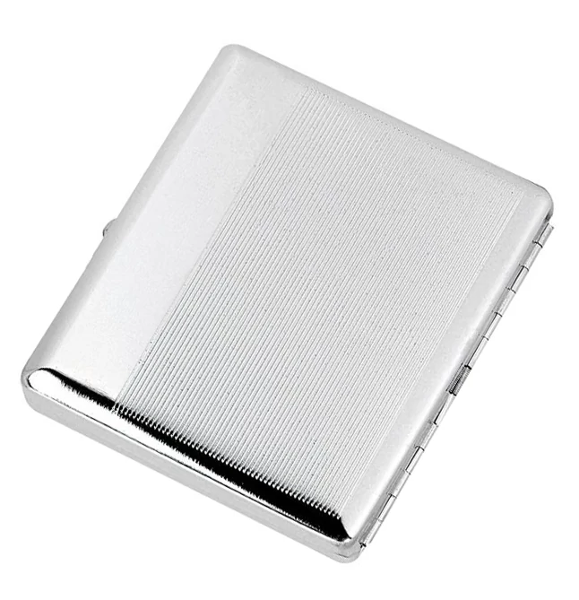 Fényes ezüst színű cigarettatárca, 18 db normál cigaretta fér el benne.