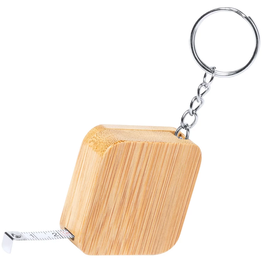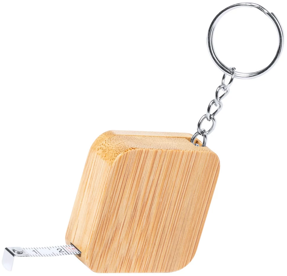 Kulcstartó 1 méteres mérőszalaggal, bambusz borítással.