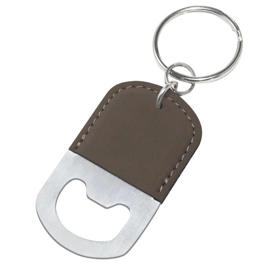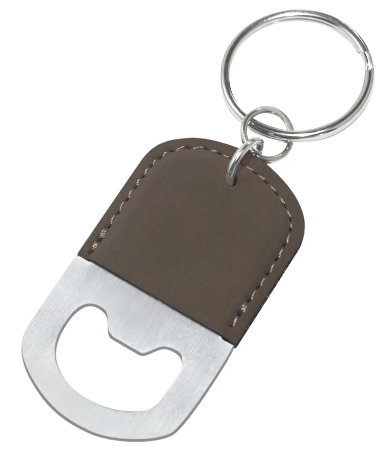 Fém - műbőr kulcstartó üvegnyitóval.