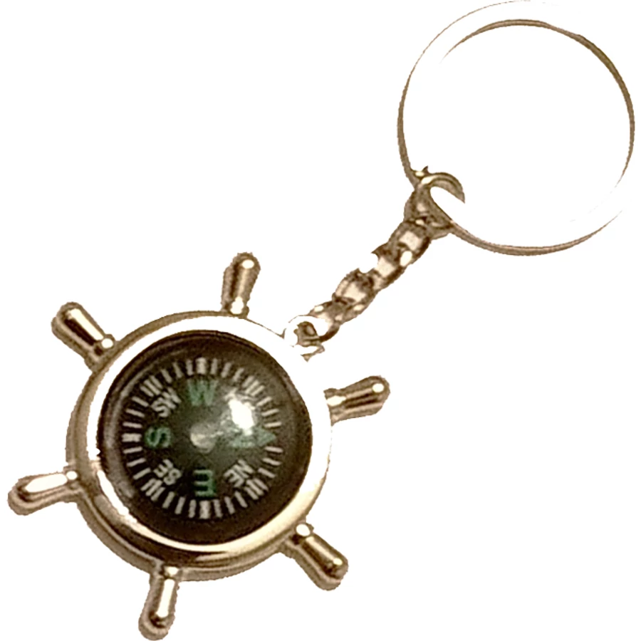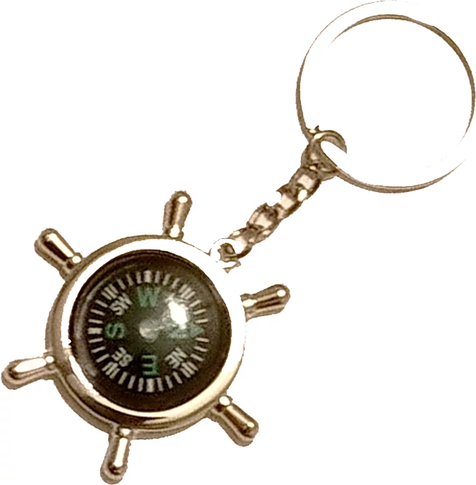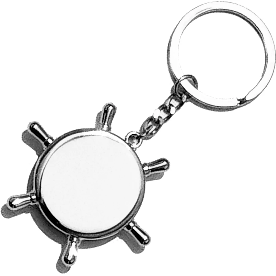 Fényes ezüst színű hajókormány alakú iránytűs kulcstartó. A hátsó oldala gravírozható.