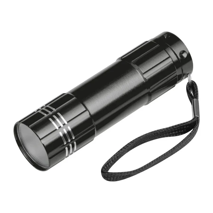 9 LED-es alumínium zseblámpa csuklóra akasztható zsinorral.