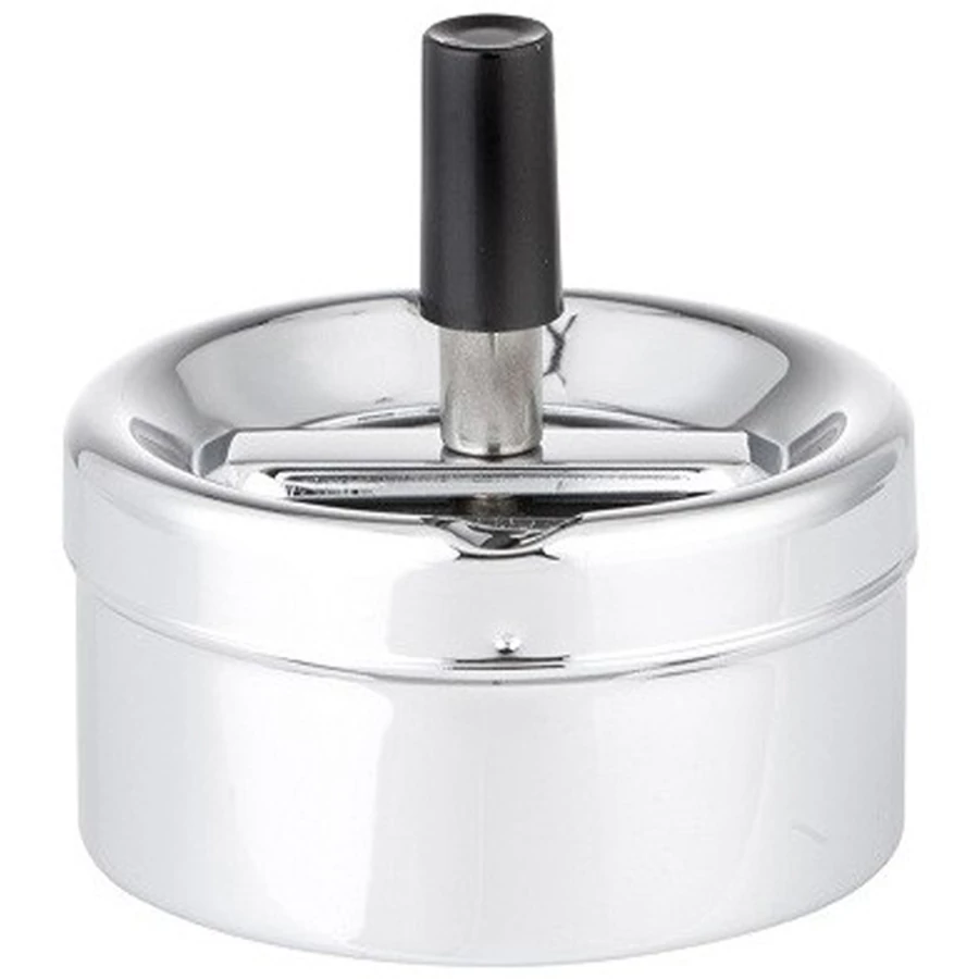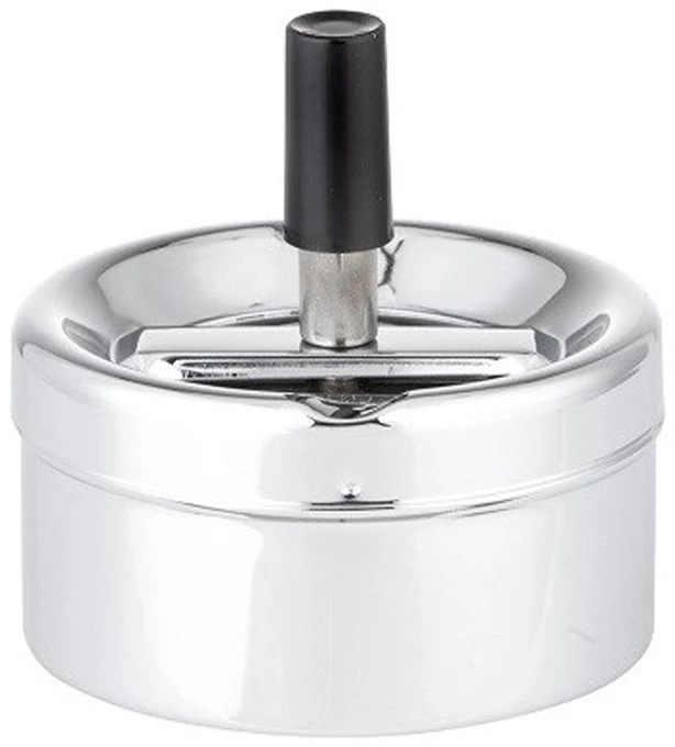 Sima kerek, fényes ezüstszínű "pörgős" hamutartó.