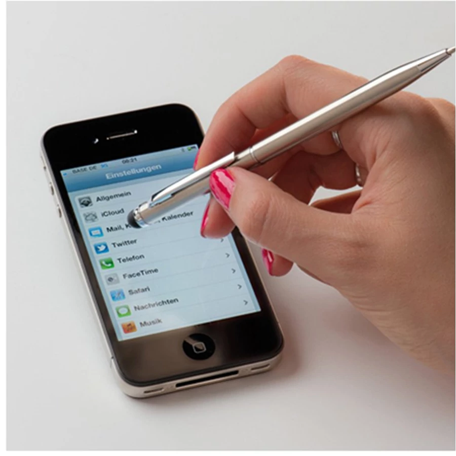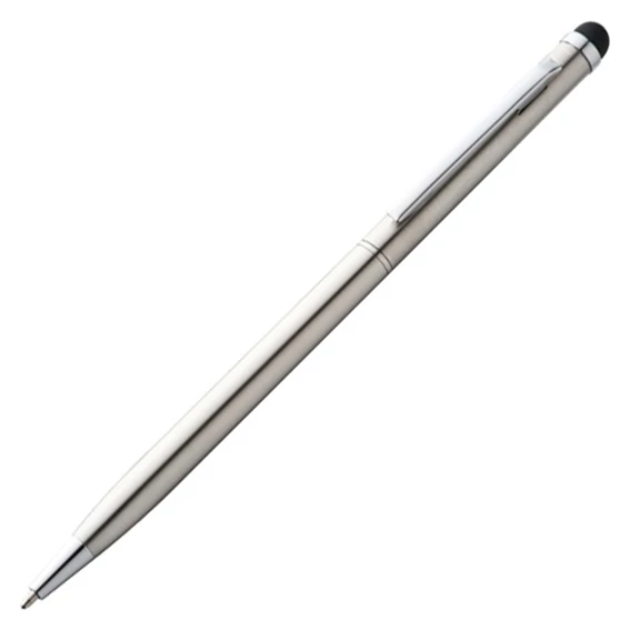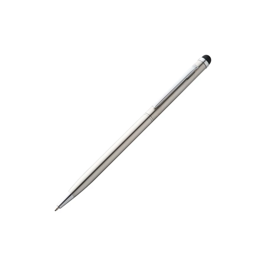 Kiváló minőségű rozsdamentes acélból készült golyóstoll, amellyel az érintőképernyő használata sem okozhat gondot! Nagy kék tollbetéttel szállítjuk.