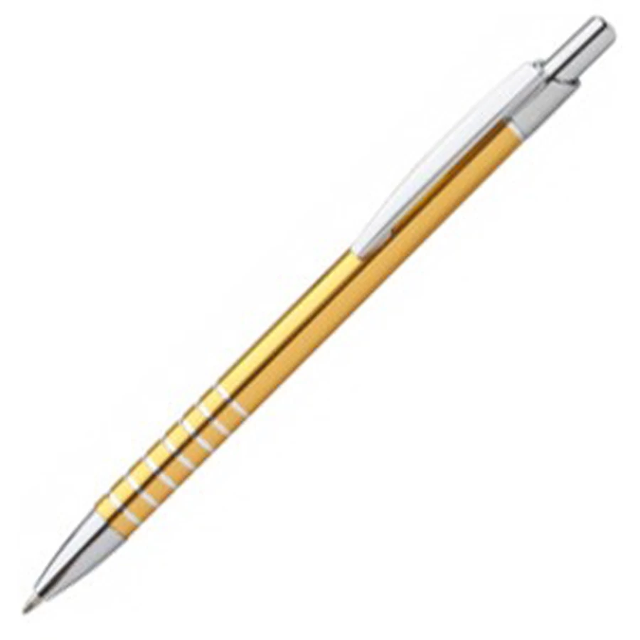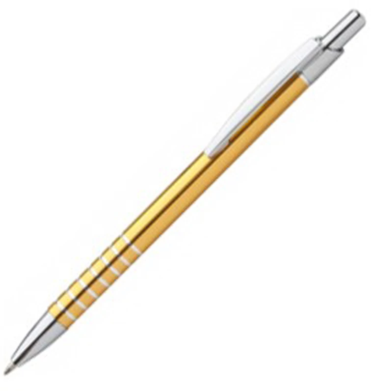 Alumínium golyóstoll, fém klipsszel és króm nyomógombbal.