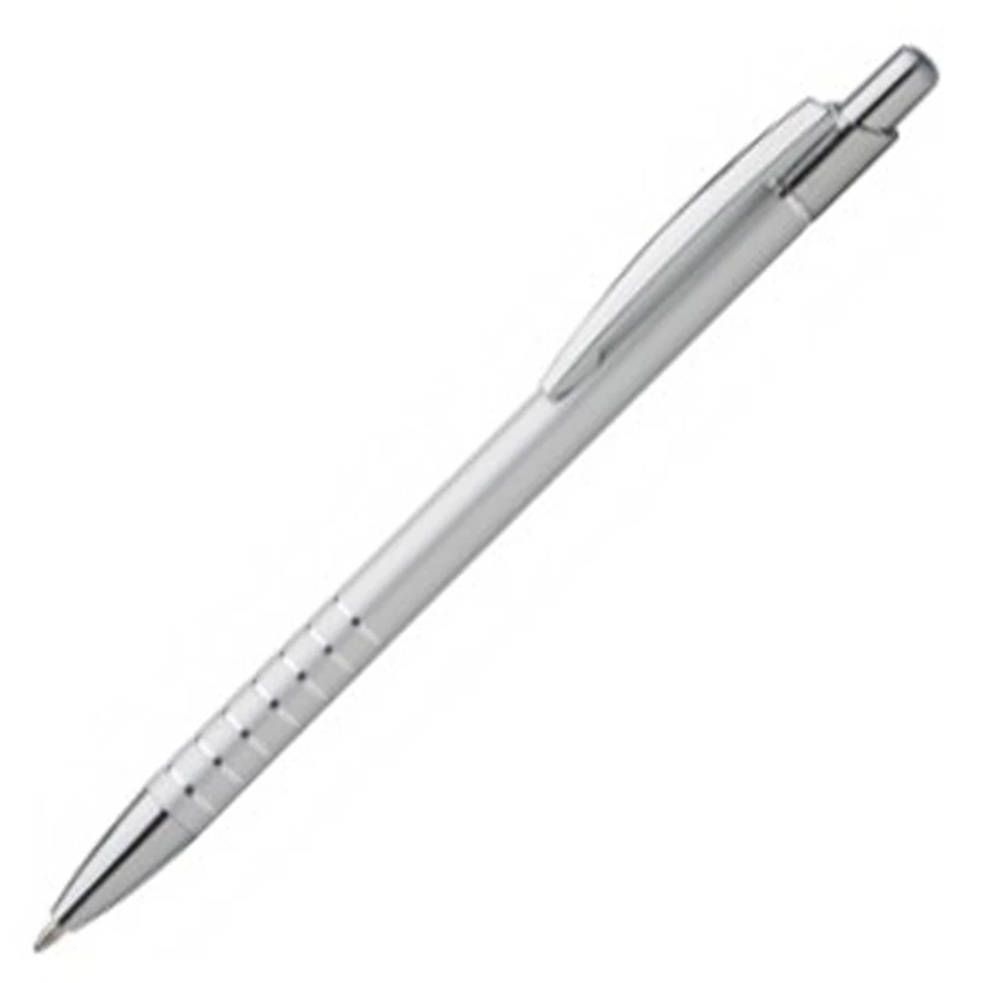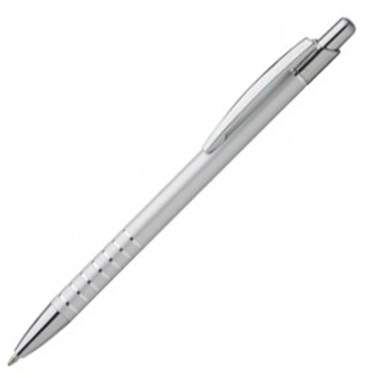Alumínium golyóstoll, fém klipsszel és króm nyomógombbal.