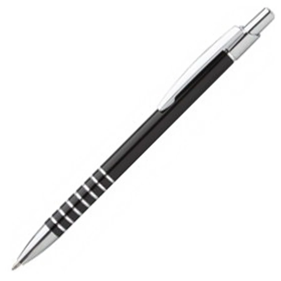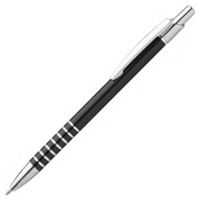Alumínium golyóstoll, fém klipsszel és króm nyomógombbal.
