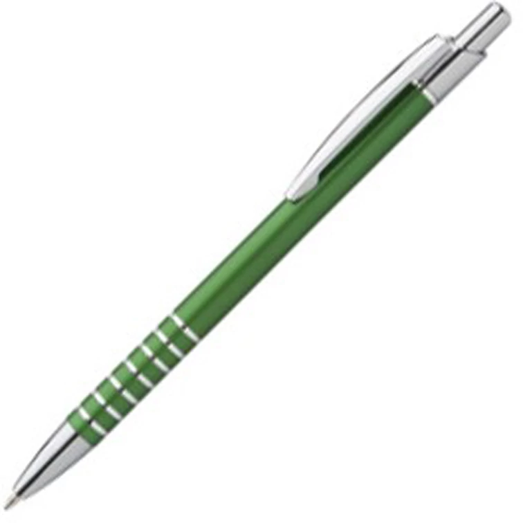 Alumínium golyóstoll, fém klipsszel és króm nyomógombbal.