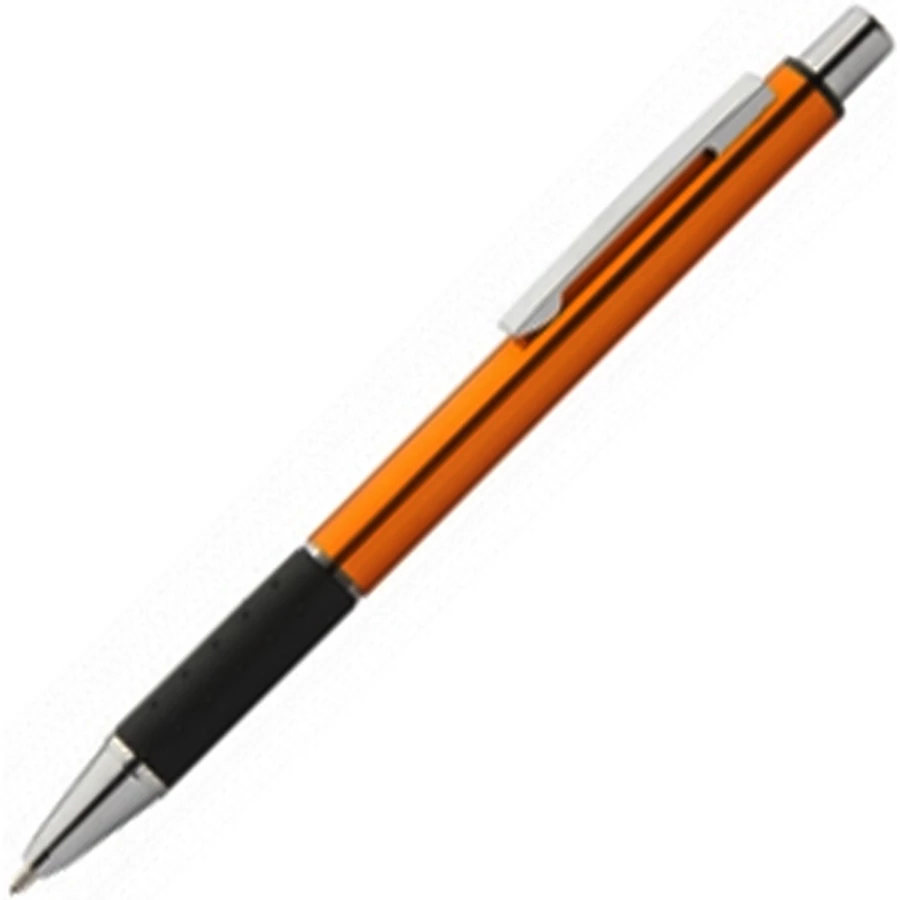Fényes, alumínium testű golyóstoll, celofántasakba csomagolva.