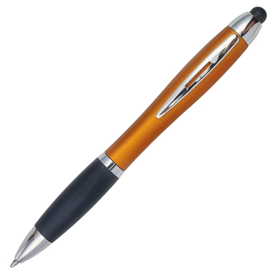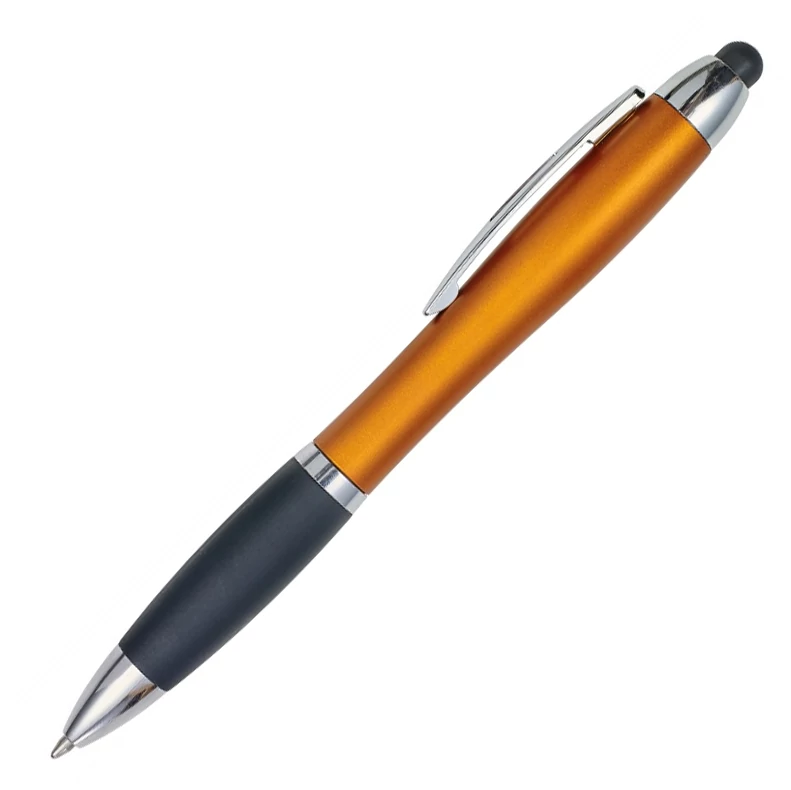 Műanyag golyóstoll nagy kéken író tollbetéttel, fém klipsszel, touch pen funkcióval és gumi markolattal.