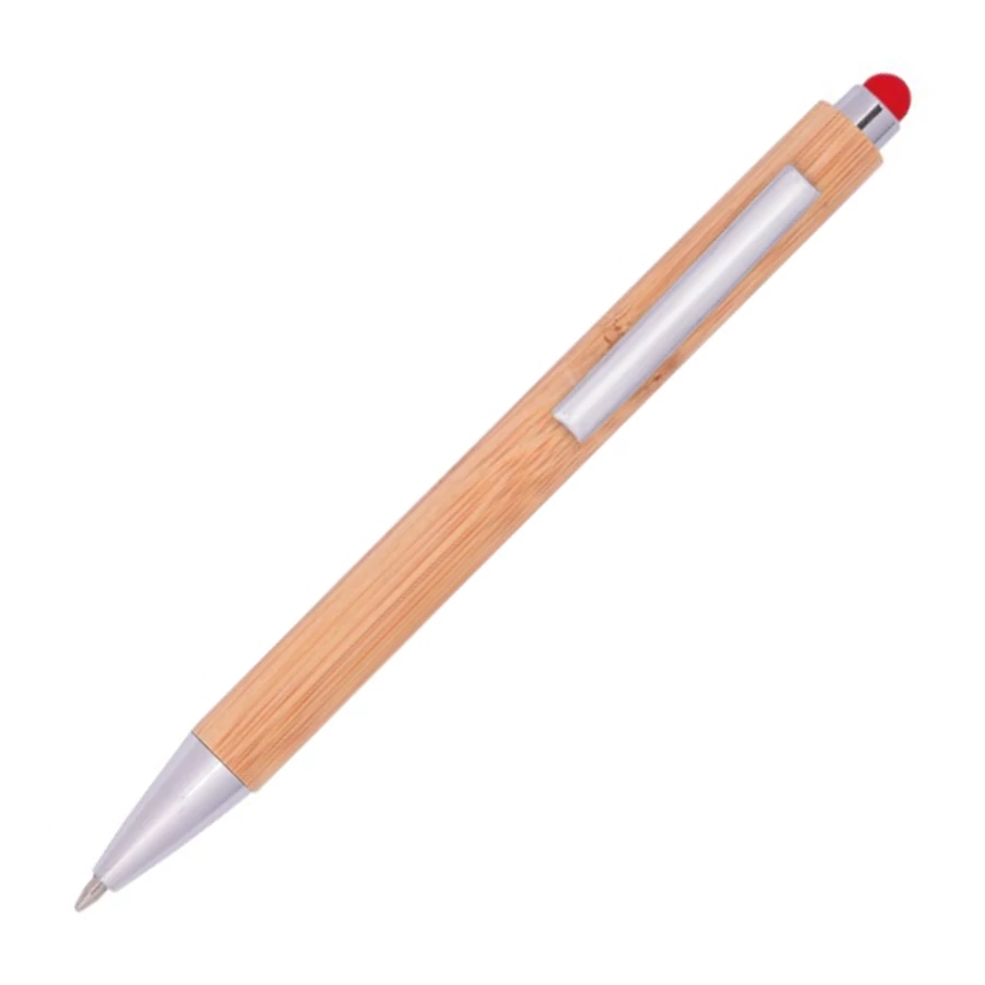 "Lotter" érintőképernyős bambusz golyóstoll - piros gomb
