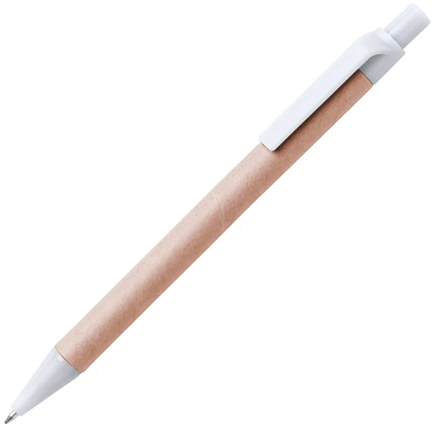 Karton golyóstoll műanyag klipsszel és fehér színű kiegészítőkkel.