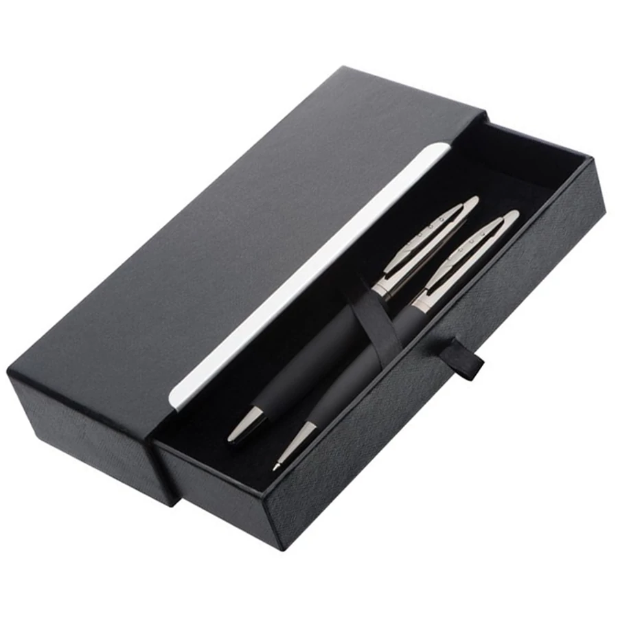 A csomag tartalma egy csavaró mechanikás golyóstoll és egy gumimarkolatos töltő toll.