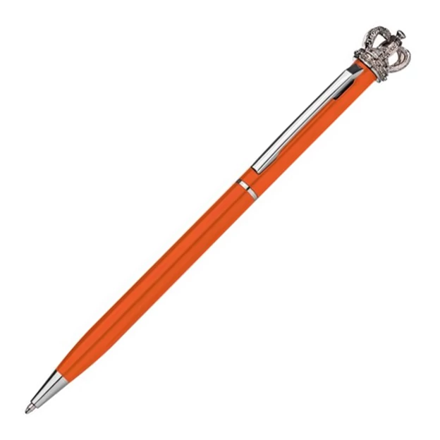 Vékony csavaró mechanikás fém golyóstoll, kék tollbetéttel.