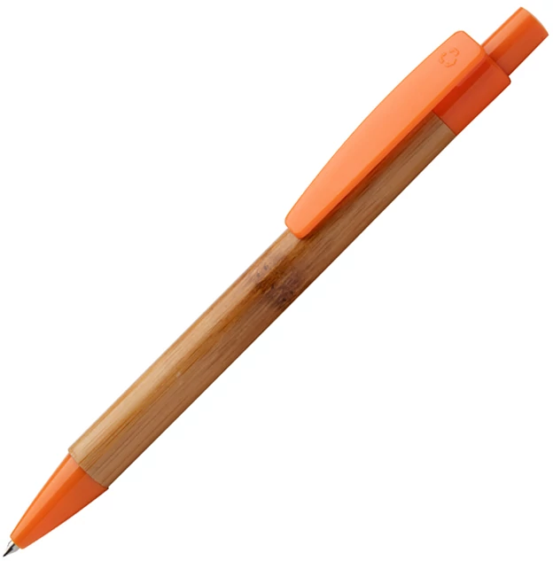 Bambusz golyóstoll narancssárga színű kiegészítőkkel.