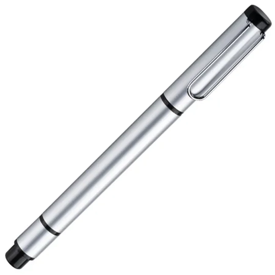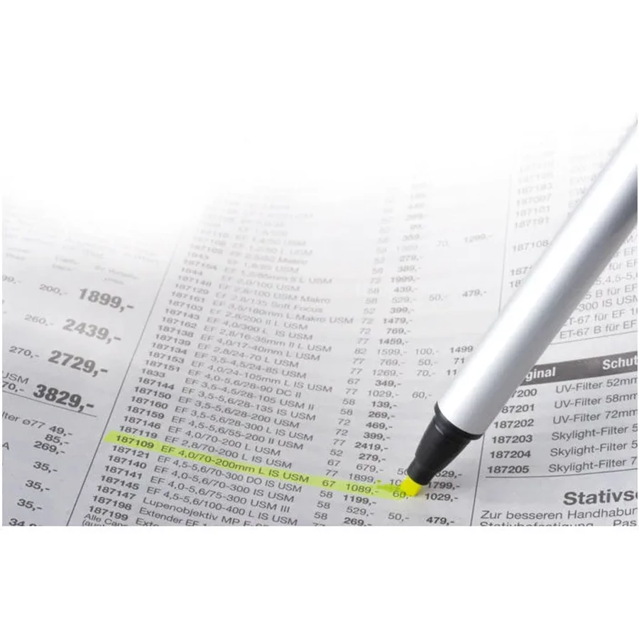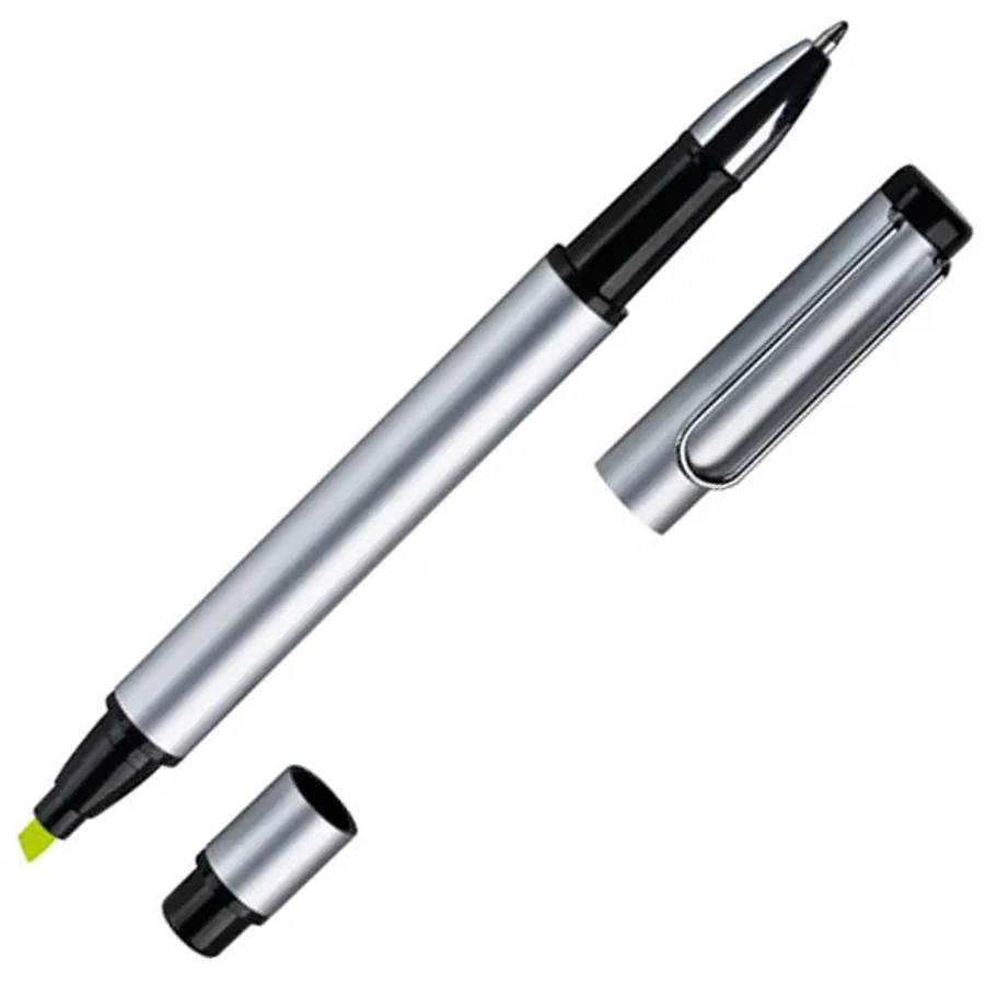 Feketén író alumínium golyóstoll, melynek a másik vége sárga szövegkiemelő.