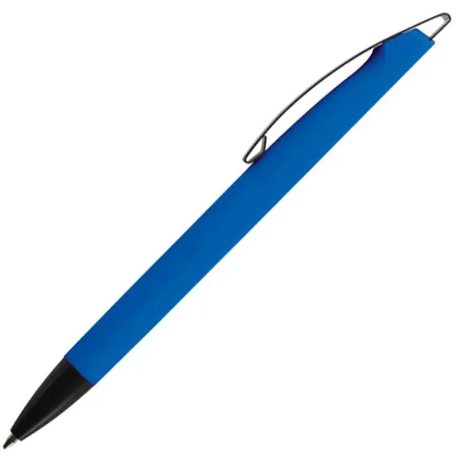Kéken író műanyag golyóstoll, gumírozott tolttesttel, fekete fém klipsszel mely ideális gravírozásra.