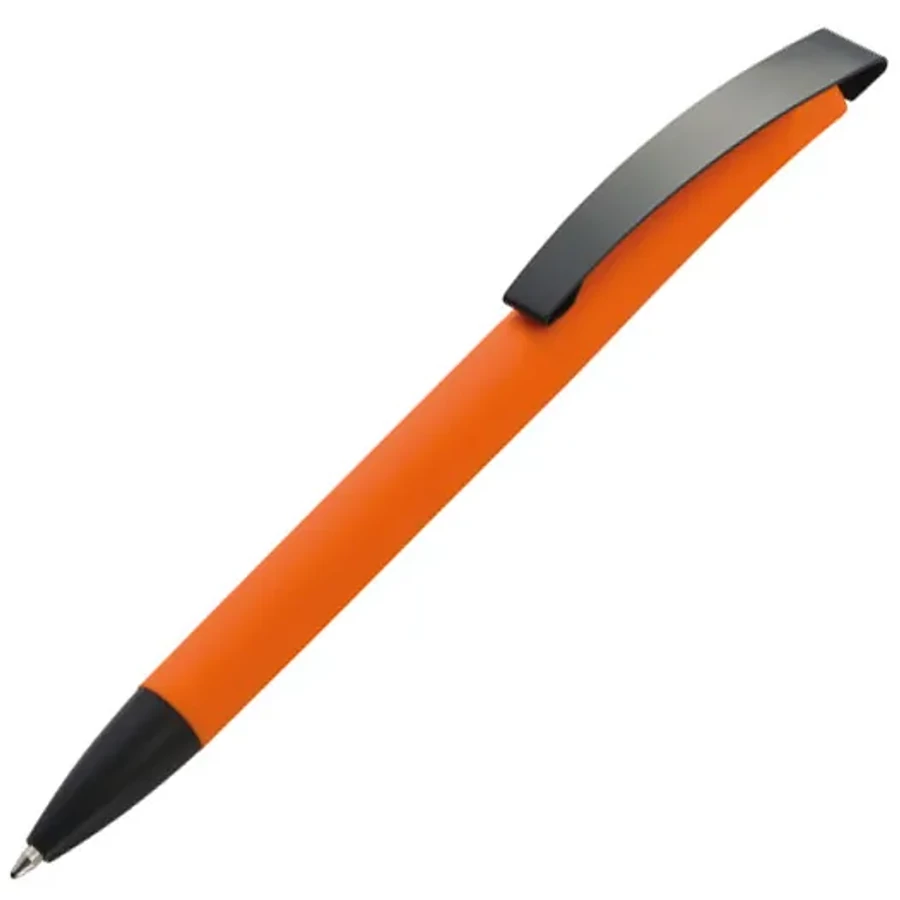 Kéken író műanyag golyóstoll, gumírozott tolttesttel, fekete fém klipsszel mely ideális gravírozásra.