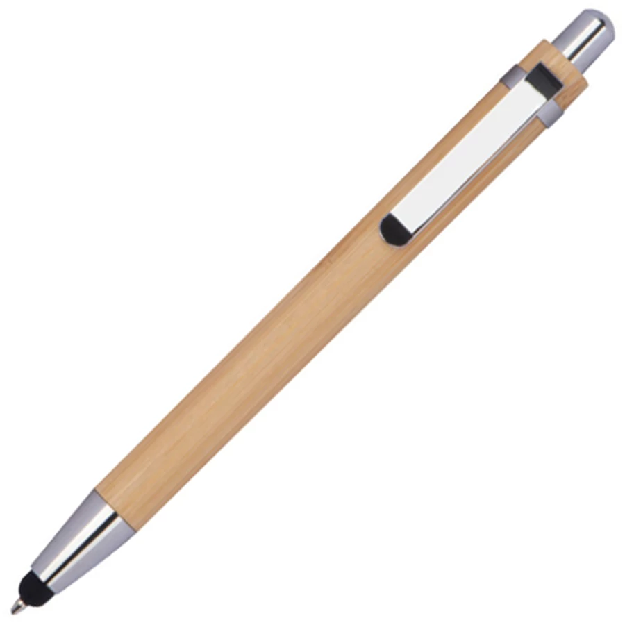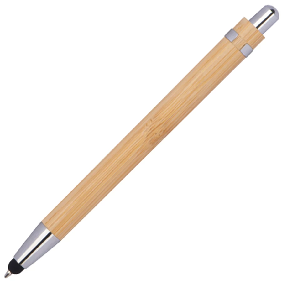 Bambusz golyóstoll fém kiegészítőkkel és érintő funkcióval.