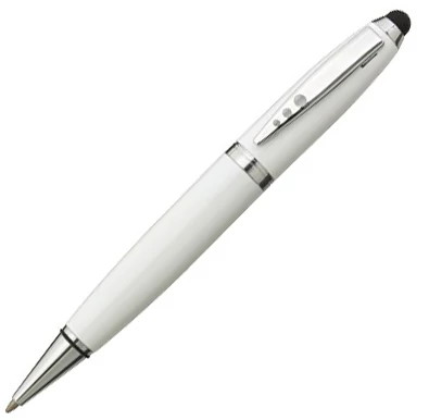 Rozsdamentes acél toll nagy tollbetéttel forgó mechanizmussal és érintőképernyős véggel.