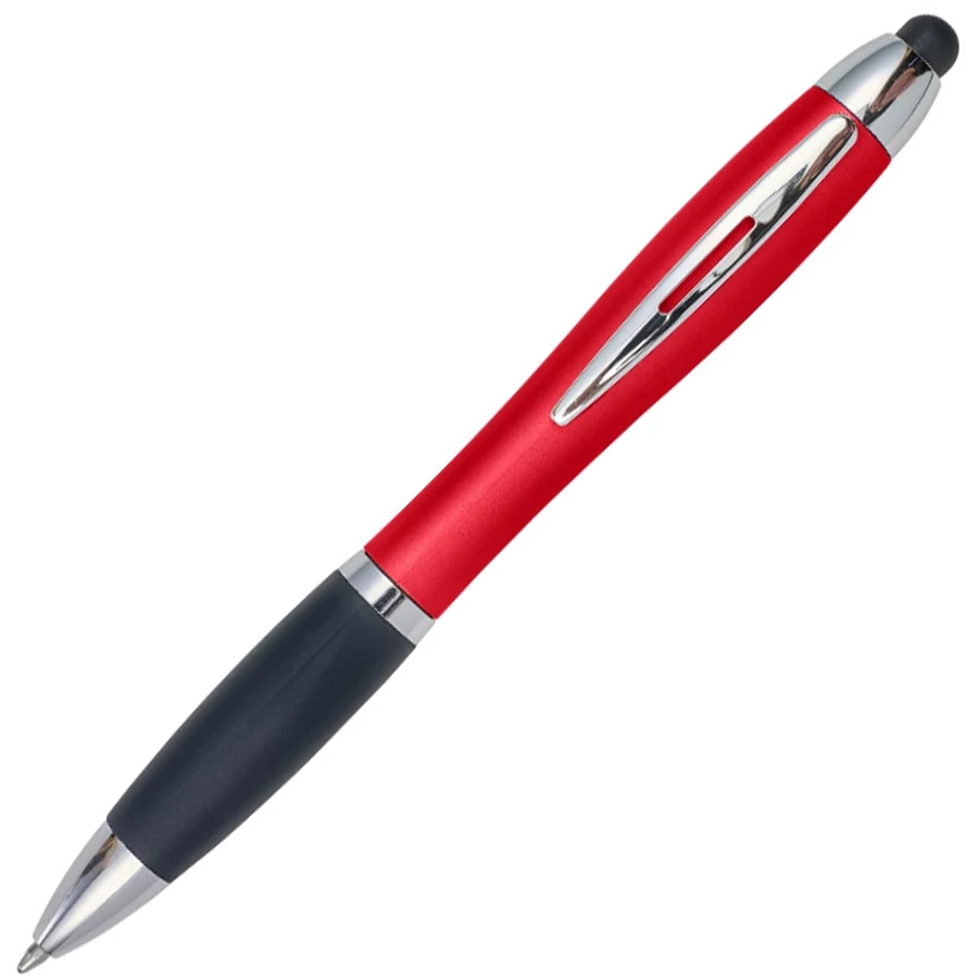 Műanyag golyóstoll nagy kéken író tollbetéttel, fém klipsszel, touch pen funkcióval és gumi markolattal.