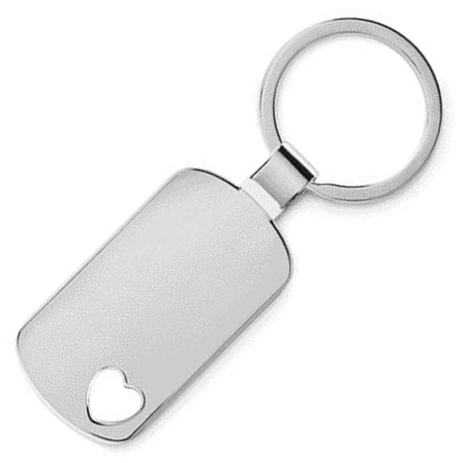 Fényes ezüst színű fém kulcstartó, kis szív motívummal az alján.