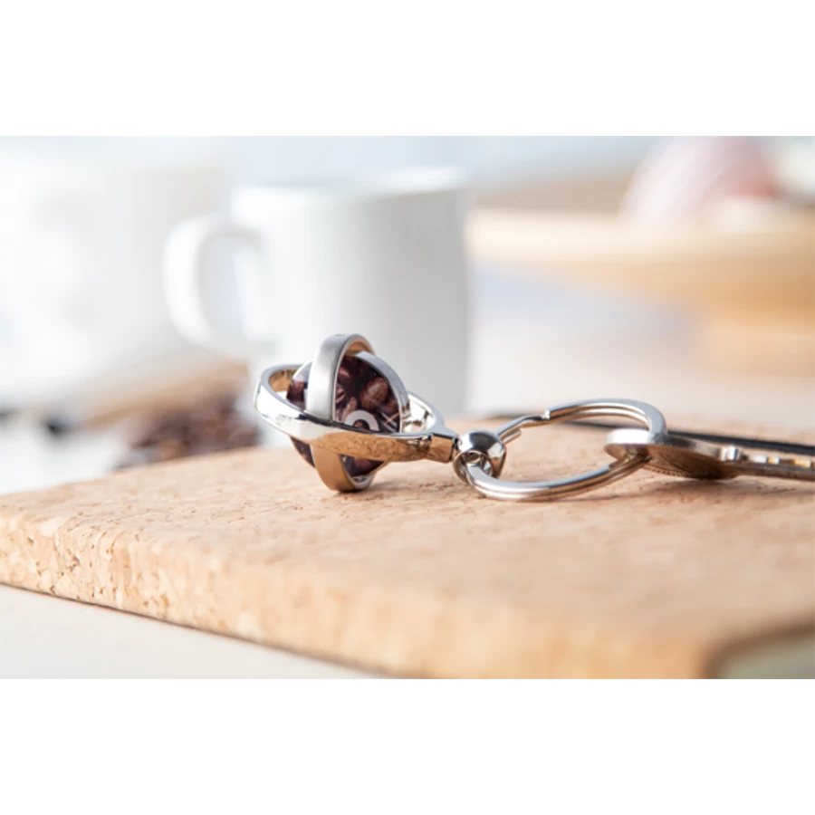 Fém, forgó belsejű kulcstartó.