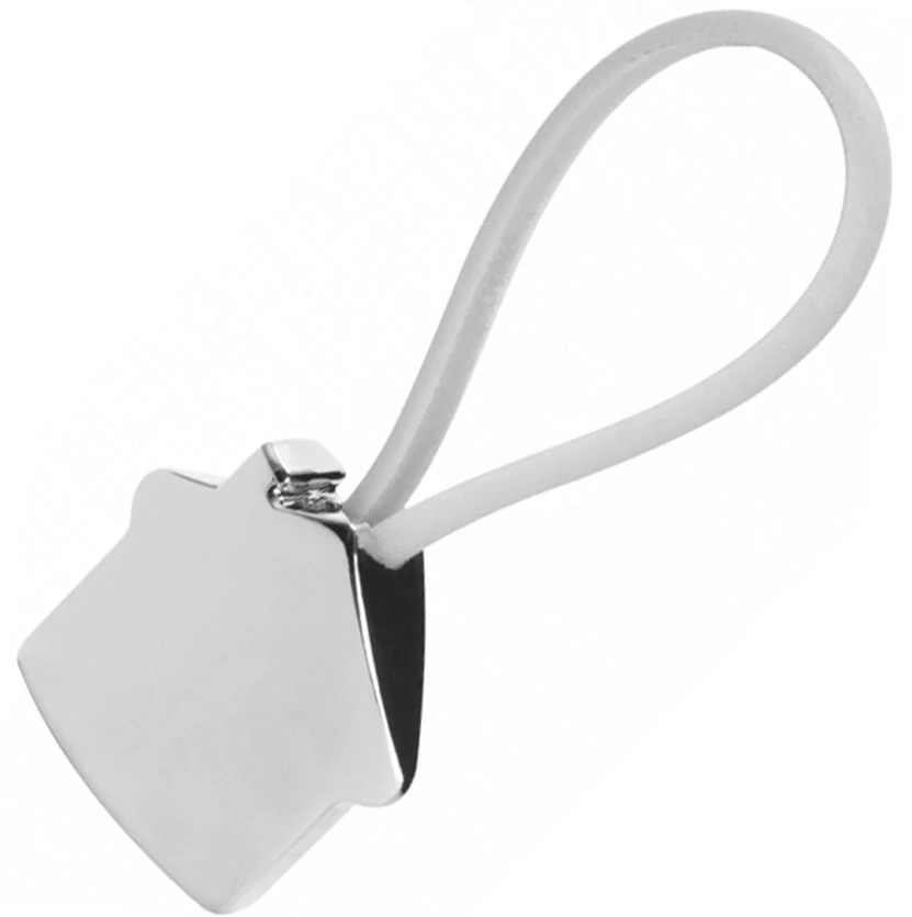 Fényes ezüst színű fém kulcstartó, színes gumi hurokkal, celofán tasakban.
