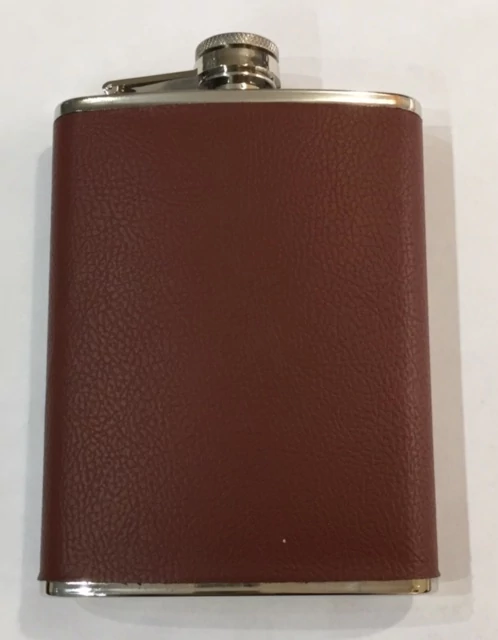 Műbőr borítású rozsdamentes acélból készült flaska.