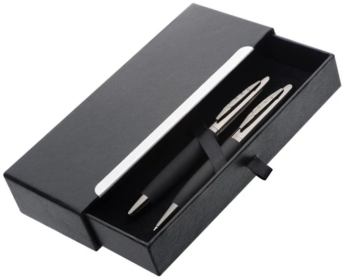 A csomag tartalma egy csavaró mechanikás golyóstoll és egy gumimarkolatos töltőtoll.