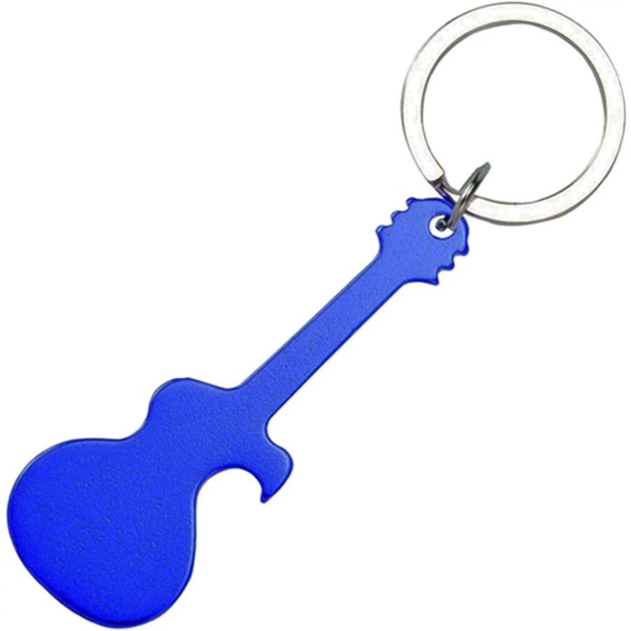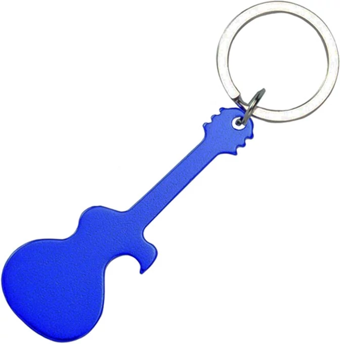 Gitár formájú alumínium kulcstartó, üvegnyitó funkcióval.