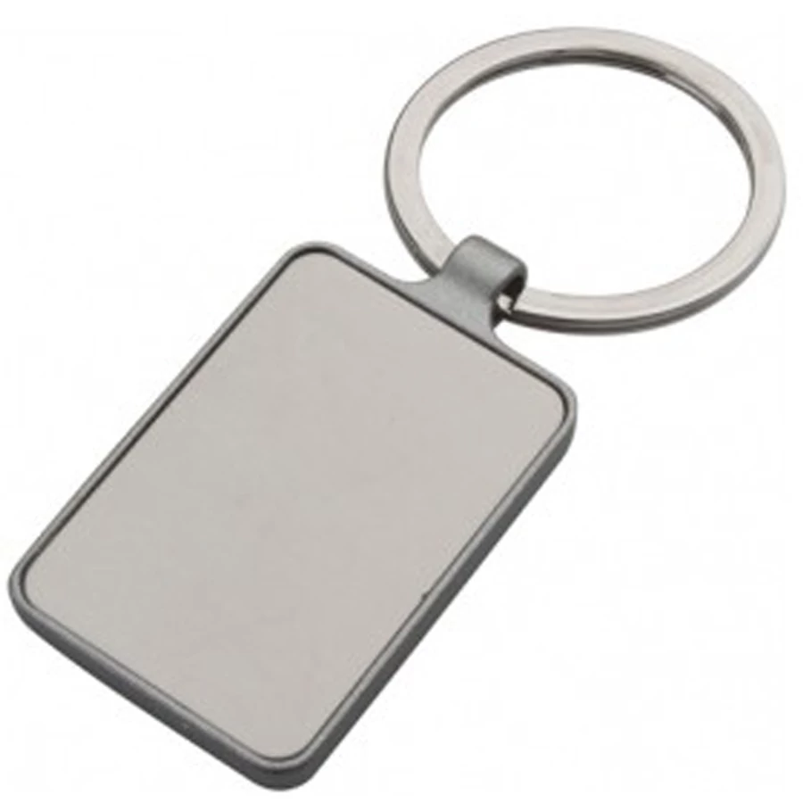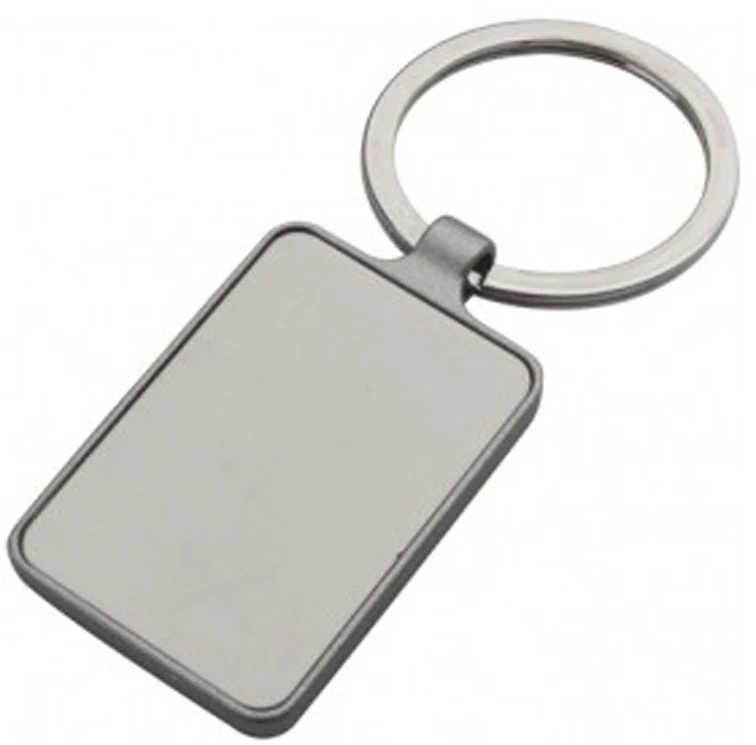 Fém, téglalap alakú kulcstartó, mindkét oldalán, antracit színű fényes felületű fém betéttel.