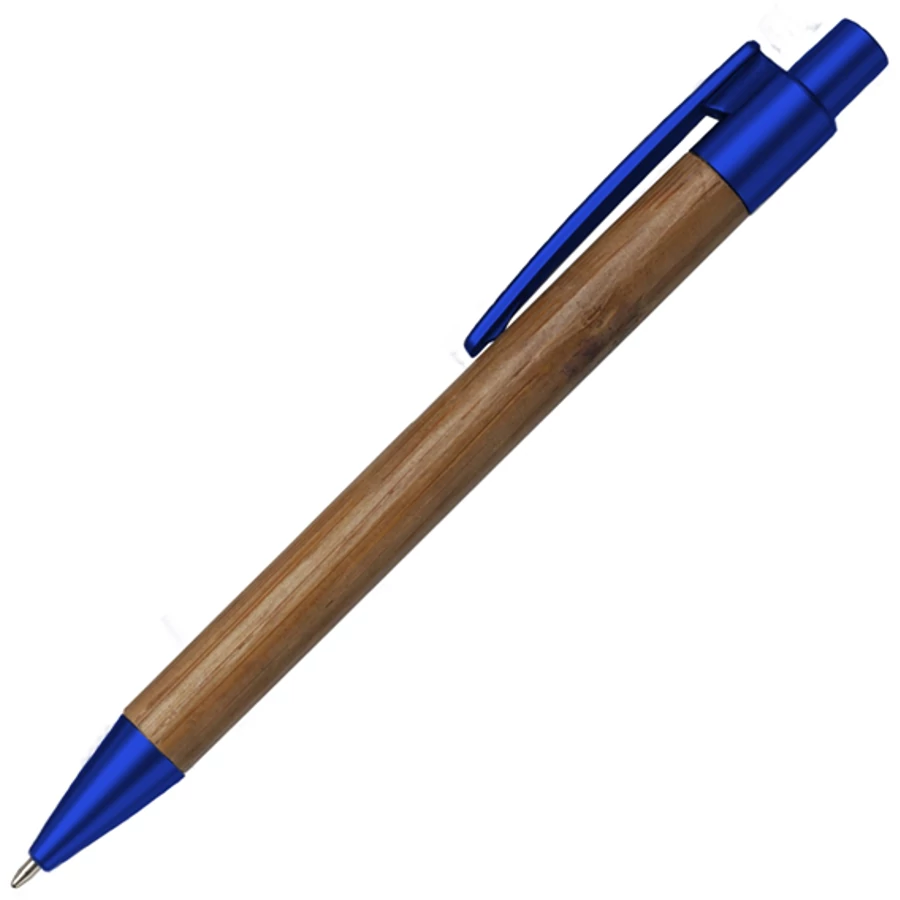 Bambusz golyóstoll kék színű kiegészítőkkel.