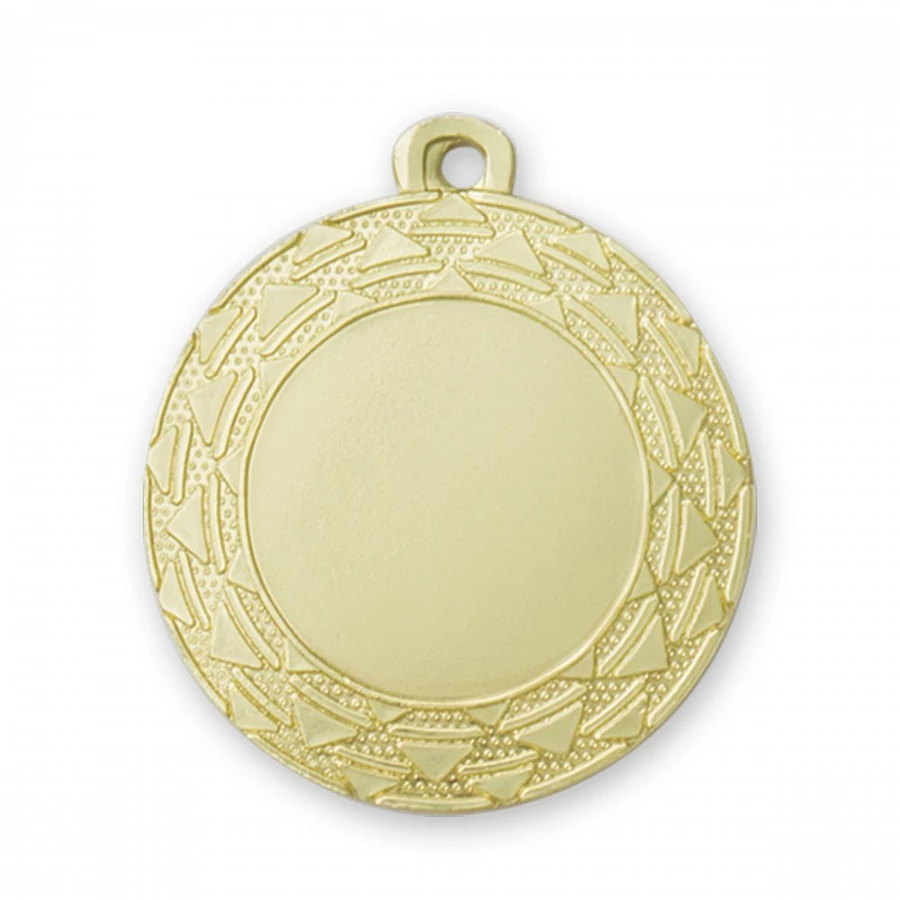 Arany színű kerek érem. A közepe jól gravírozható.