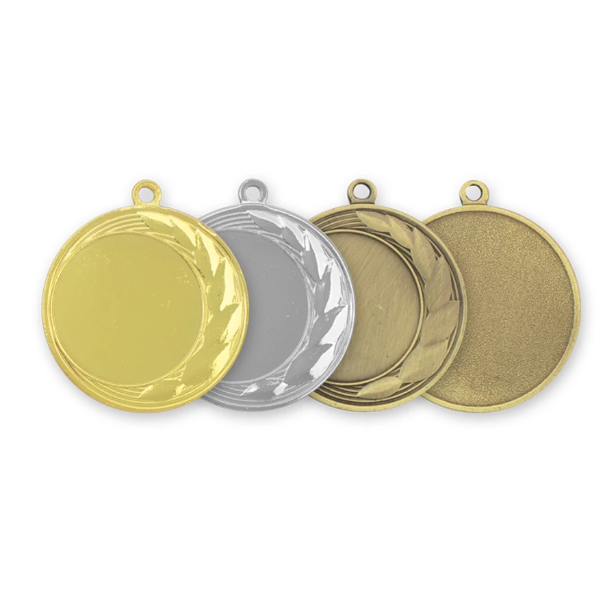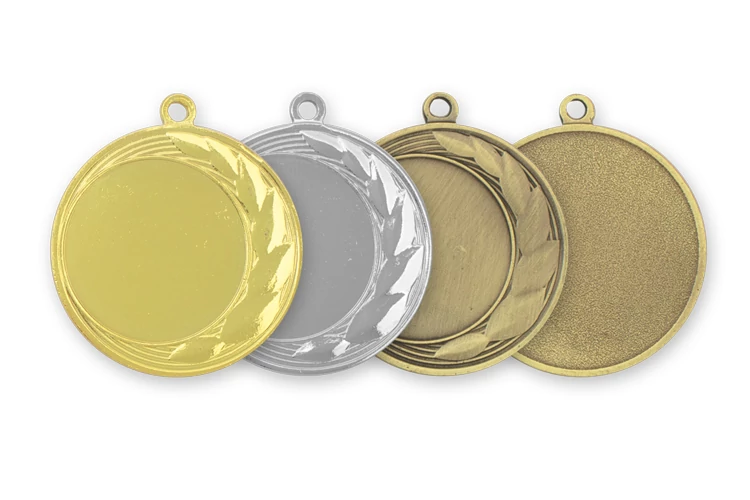 Bronz színű kerek érem, levél mintával. A képen jobbról a második.
