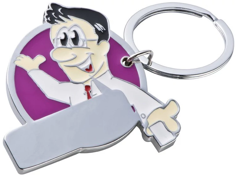 Fém kulcstartó a figura részen színes lakkozott felülettel.