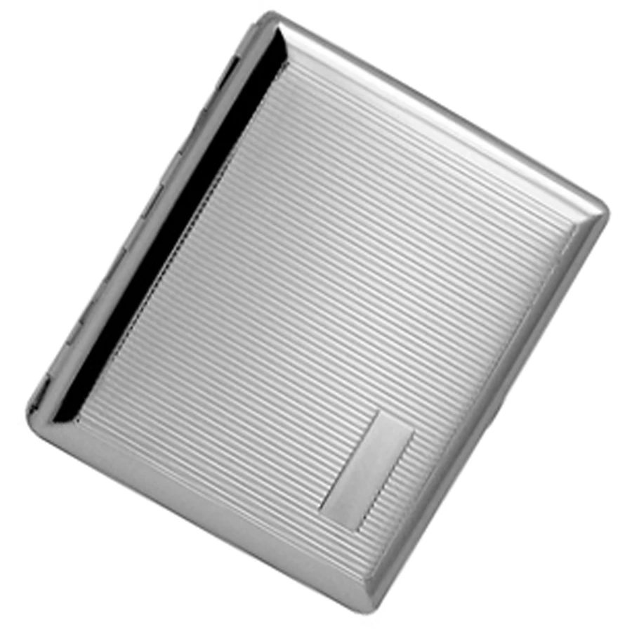 Fényes, ezüst színű tárca, 20-24 szál cigaretta fér el benne.