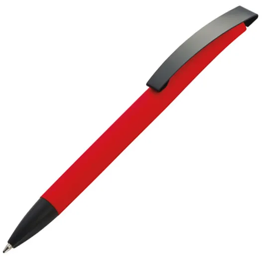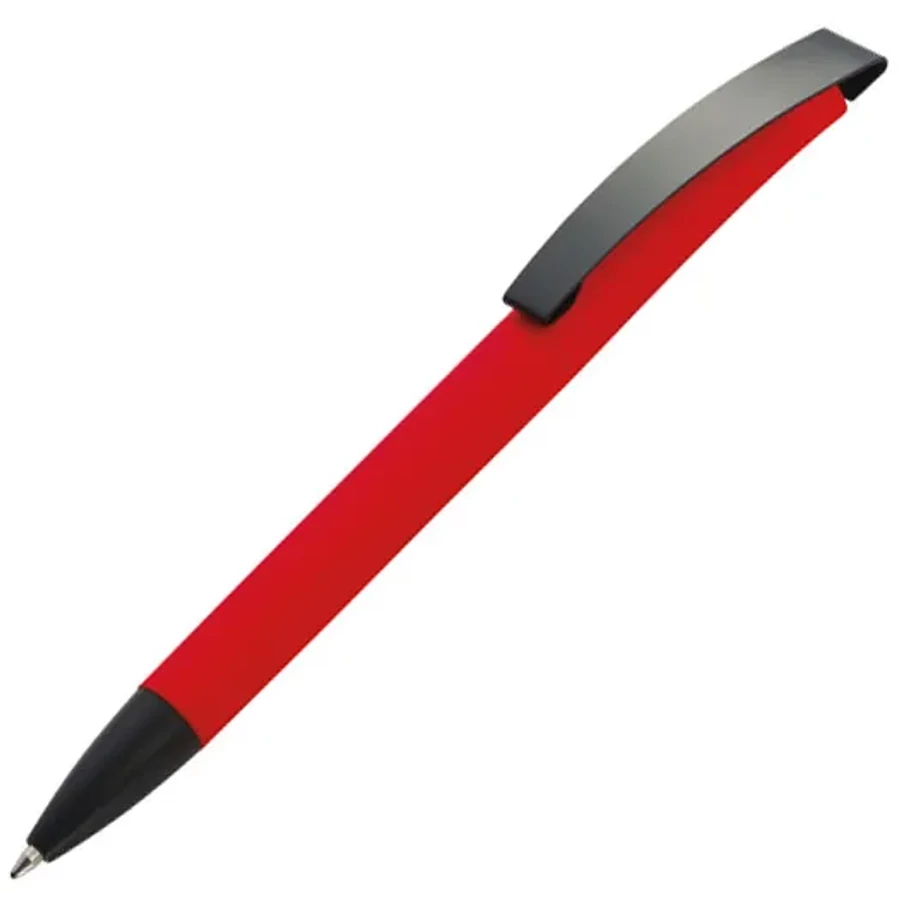 Kéken író műanyag golyóstoll, gumírozott tolttesttel, fekete fém klipsszel mely ideális gravírozásra.