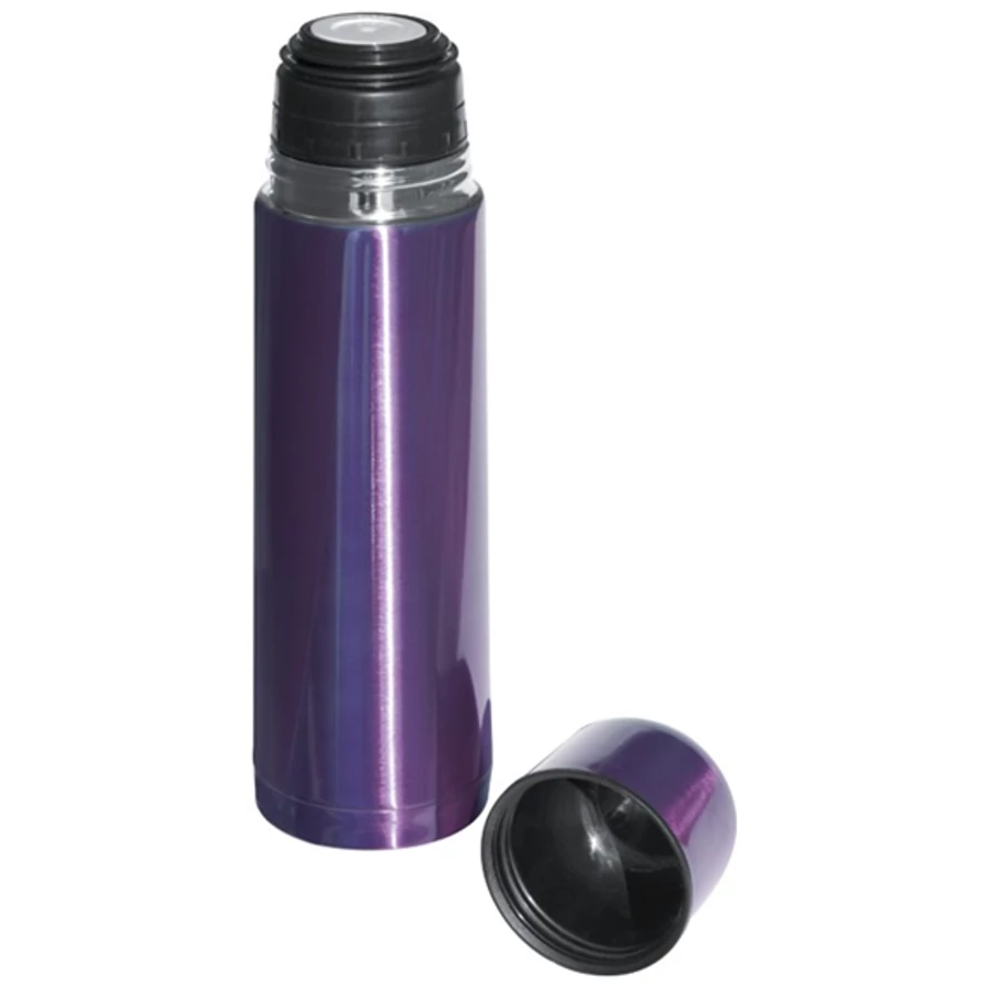 Rozsdamentes acél termosz, gyors zárral és bögrével.