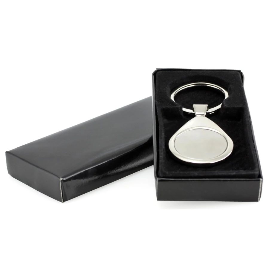 Csepp alakú kulcstartó fényes ezüst színű kivitelben. Mind a két oldala gravírozható.