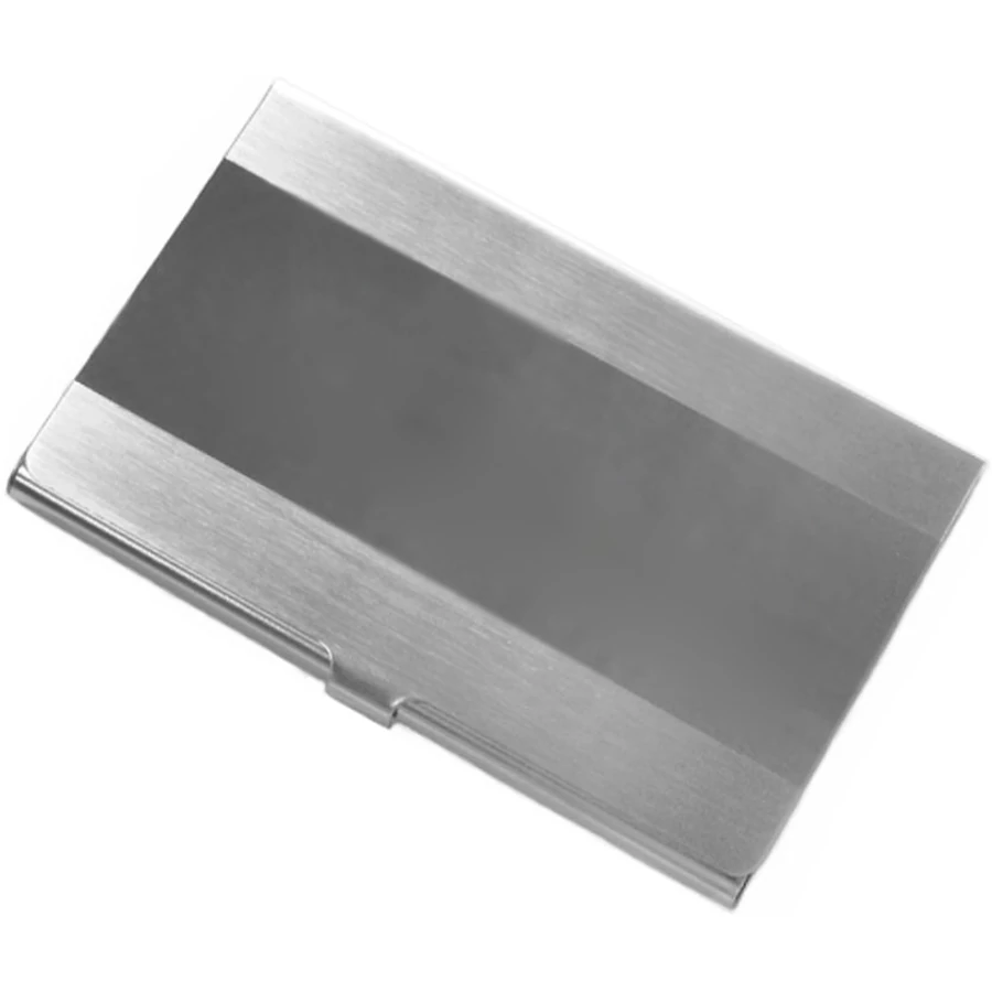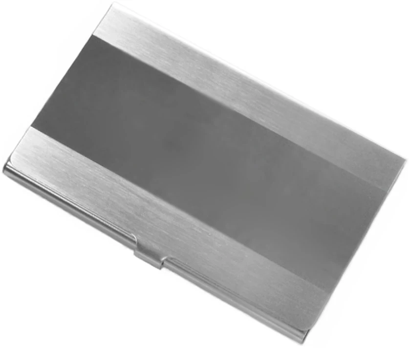 Fényes fedeles névjegytartó, a fedél alsó és felső szélén matt sávval.