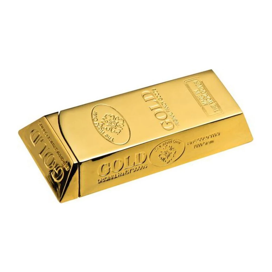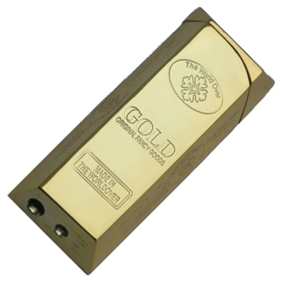 Elegáns újratölthető öngyújtó, kicsi aranyrúd formájában.