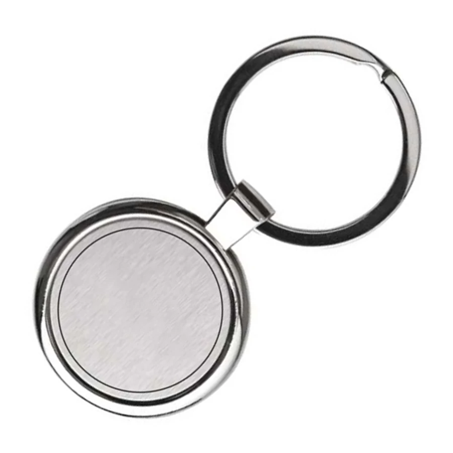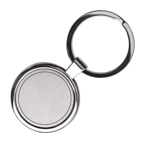 Kör alakú elegáns fém kulcstartó, fényes peremmel és matt króm, jól gravírozható belső felülettel.